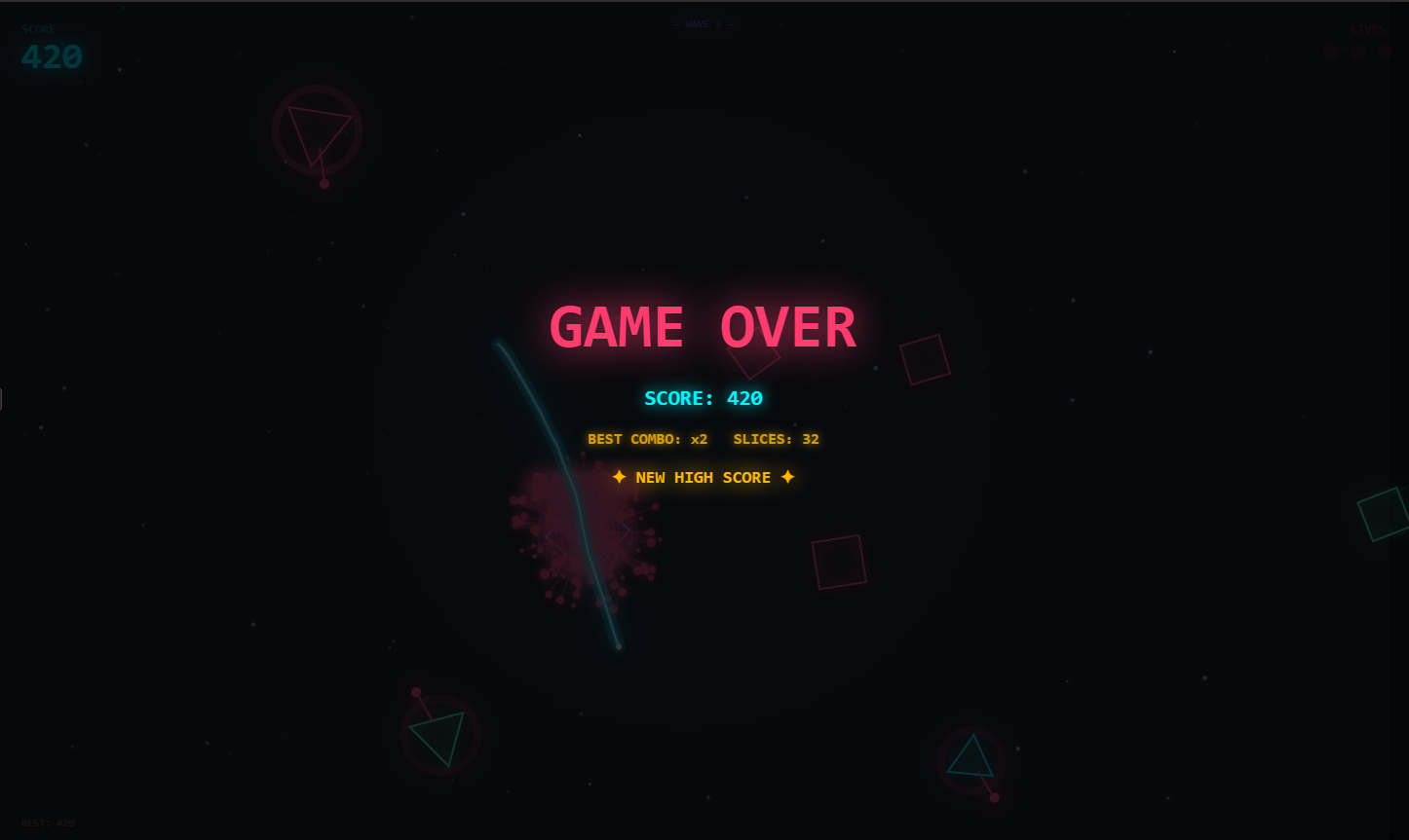 While the original Grid has been sunset, the spirit of Neon’s Studio is sharper than ever. Neon Slice is our focused pivot into high precision, tactile arcade combat. Developed in just 7 days as a strategic move to keep the studio's momentum, this game takes everything we learned from thousands of lines of code and condenses it into a lethal, satisfying experience.