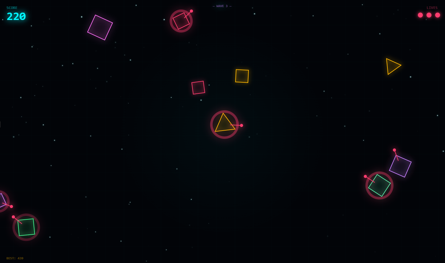 - Momentum Physics: Watch as neutralized polygons shatter and drift based on the velocity of your strike.